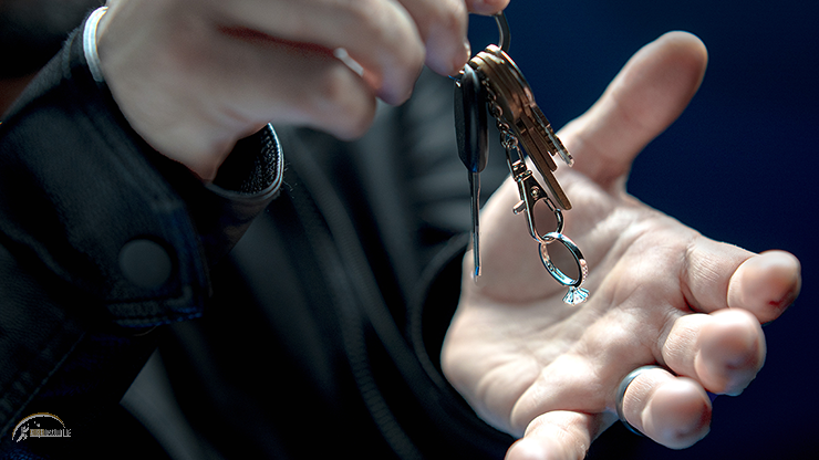 Stell dir Folgendes vor: Du leihst dir einen Ring und legst ihn in deine linke Hand. Deine rechte Hand zeigst du deutlich leer, greifst dann in deine Tasche, holst deine Schlüssel heraus und gibst sie dem Zuschauer als Pfand. Und jetzt kommt der Moment: Du lässt den Ring verschwinden – und er erscheint augenblicklich an einer kurzen Kette, die mit den Schlüsseln verbunden ist, die der Zuschauer selbst in der Hand hält. Kinnladen fallen, Augen werden groß!